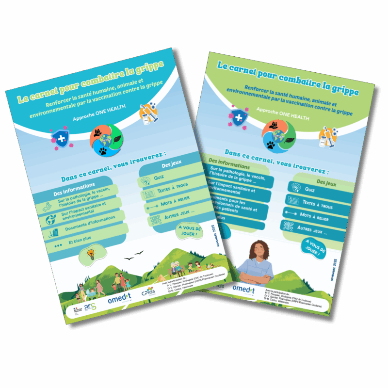 L’objectif est de parler de la grippe et de la vaccination autrement : de façon ludique (quizz, textes à trous, mots mêlés, …) et dans l’esprit One Health.