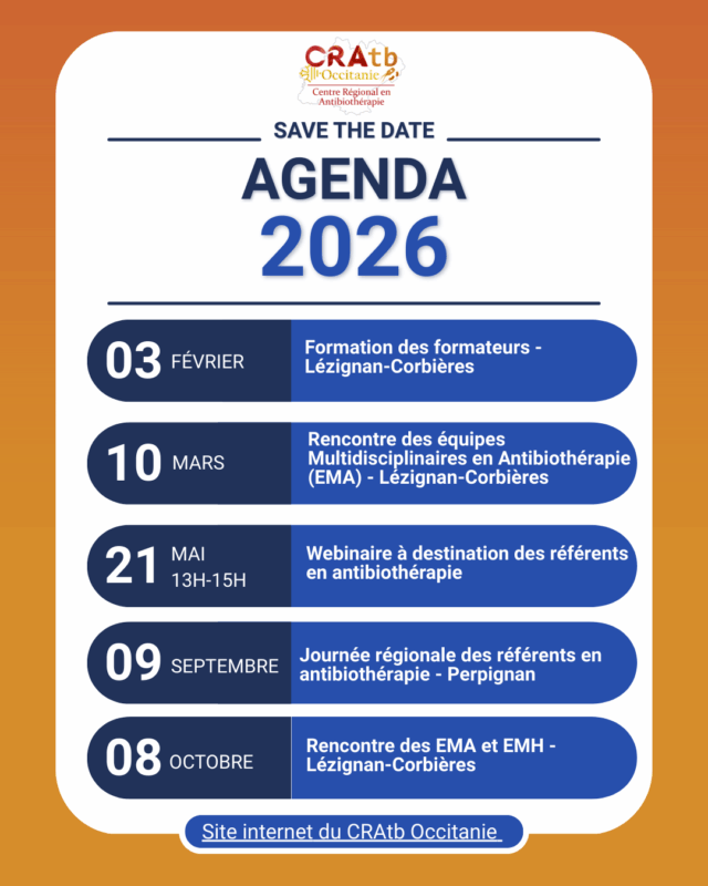 Le CRatb propose toute l’année des actions pour la promotion d’un meilleur usage des antibiotiques en Occitanie et anime les réseaux de professionnels intervenant sur le terrain auprès des acteurs des secteurs sanitaire, médico-social et des soins de ville.